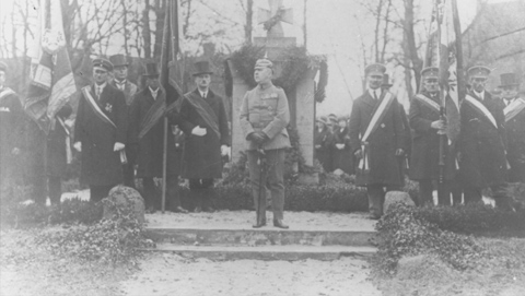 7. Uroczystość przed pomnikiem na "rynku" w Kup - (zdjęcie z okresu międzywojennego).